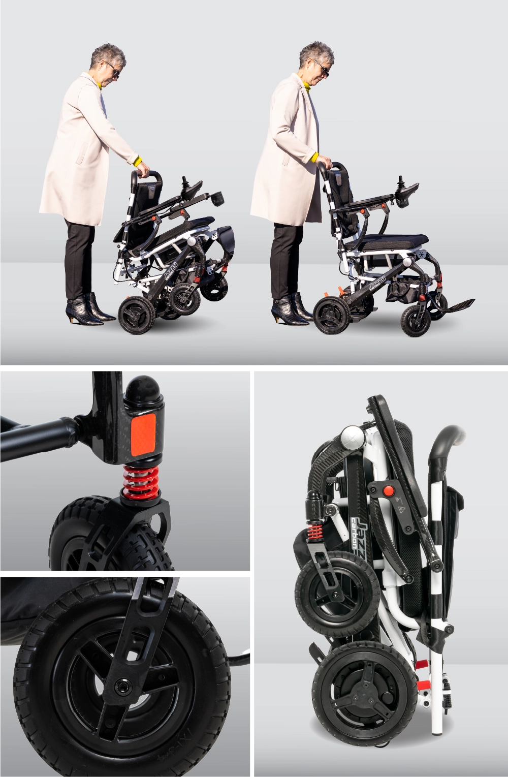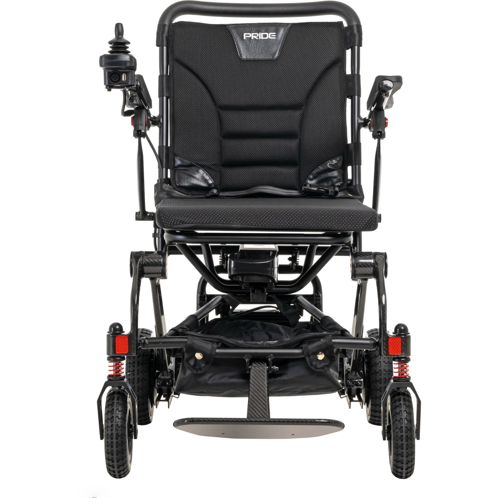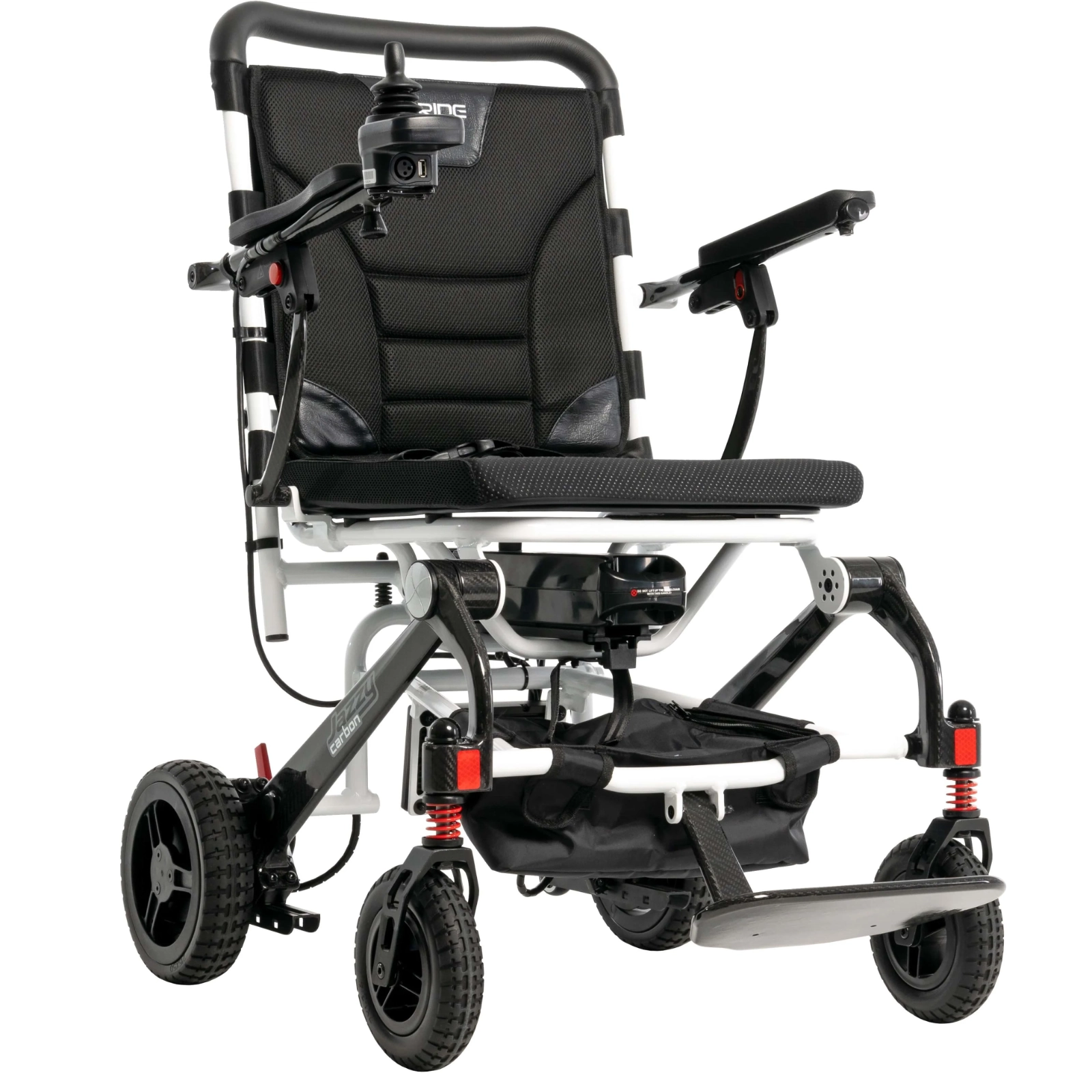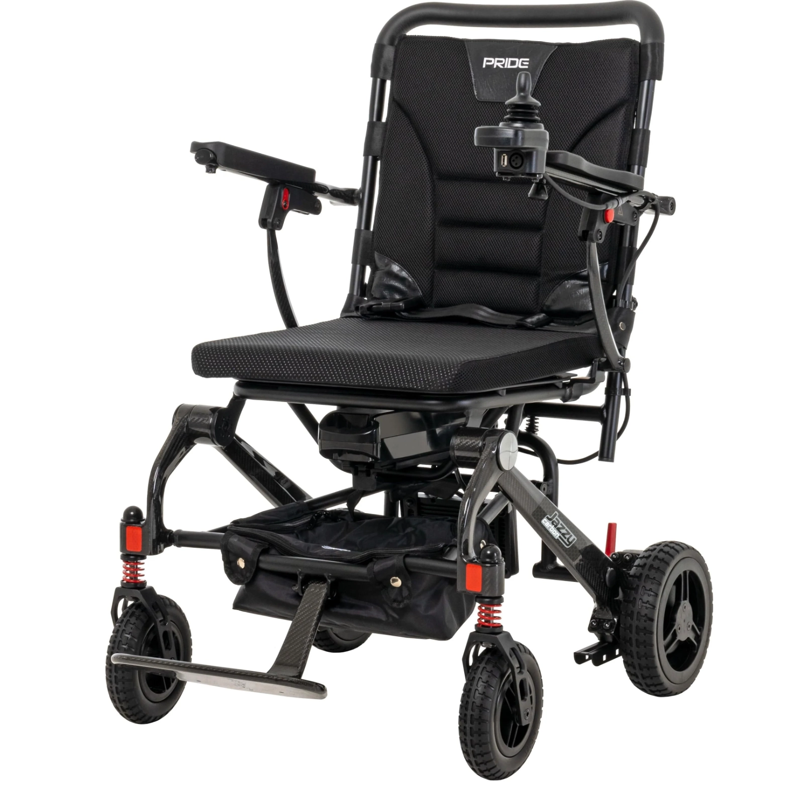 Jazzy Carbon folds down in just a few quick motions, which makes it easier to transport in cars, planes and trains. But don’t let portability fool you. Jazzy Carbon has tall, terrain-dominating wheels and a front-end suspension system, plus a comfy seat cushion to sustain you through everything your busy day throws at you.
