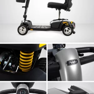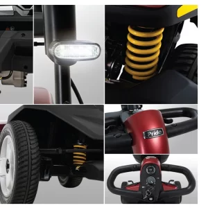 - Pride’s front and rear suspension CTS Suspension provides a smooth, comfortable ride over varied terrain