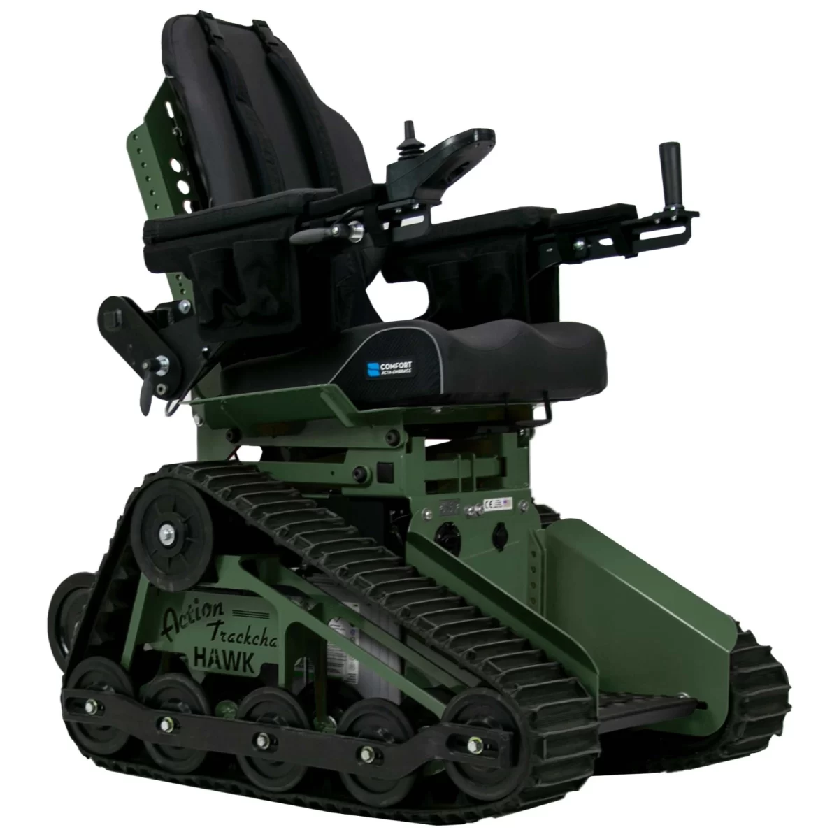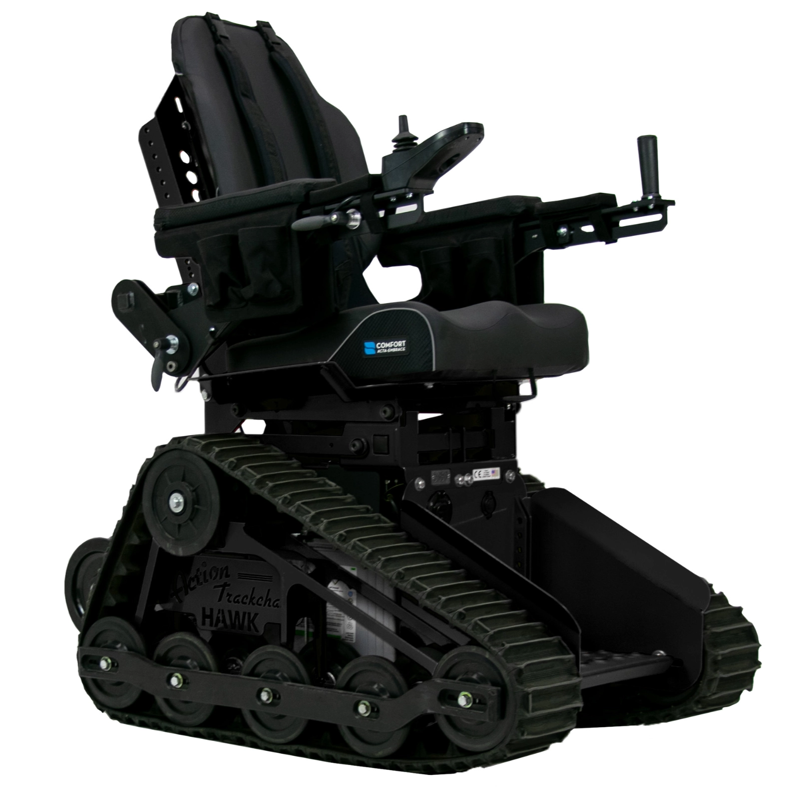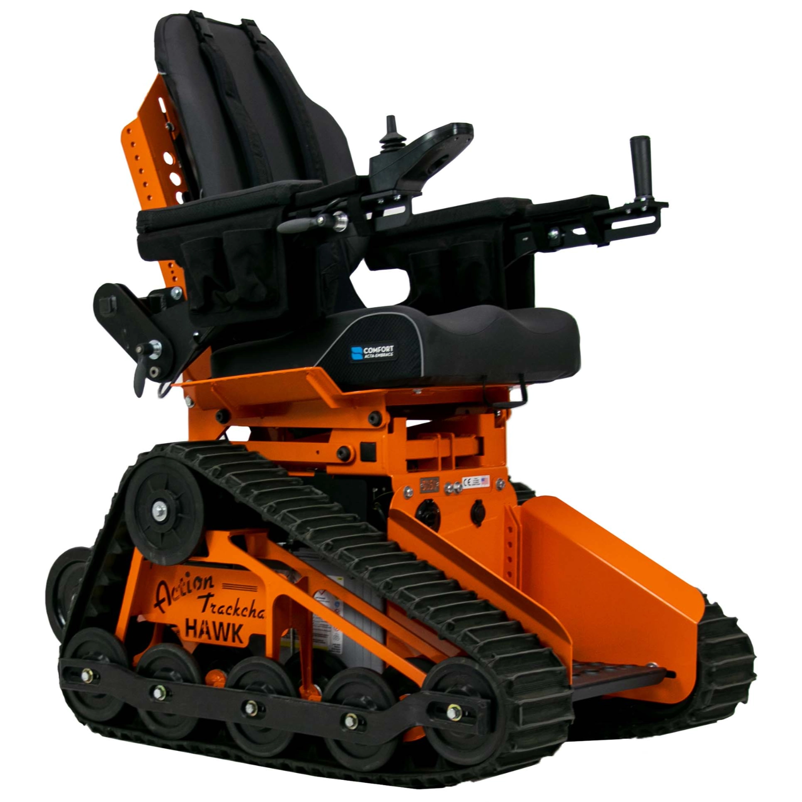The Trackchair® Hawk is tracked wheelchair cleared for sale by the FDA, opening the door for Government Finance options. The Trackchair® Hawk is narrower for individuals that are looking to pass through doorways and for those that would like to transport an Trackchair in a handicap accessible vehicle. The Hawk provides superior seating comfort and FDA options that enhance user satisfaction.