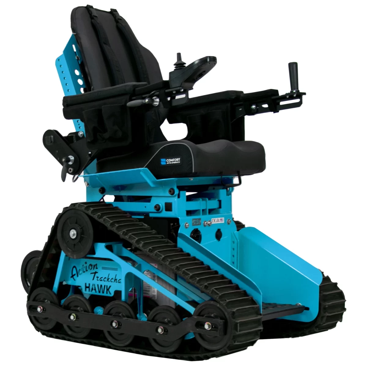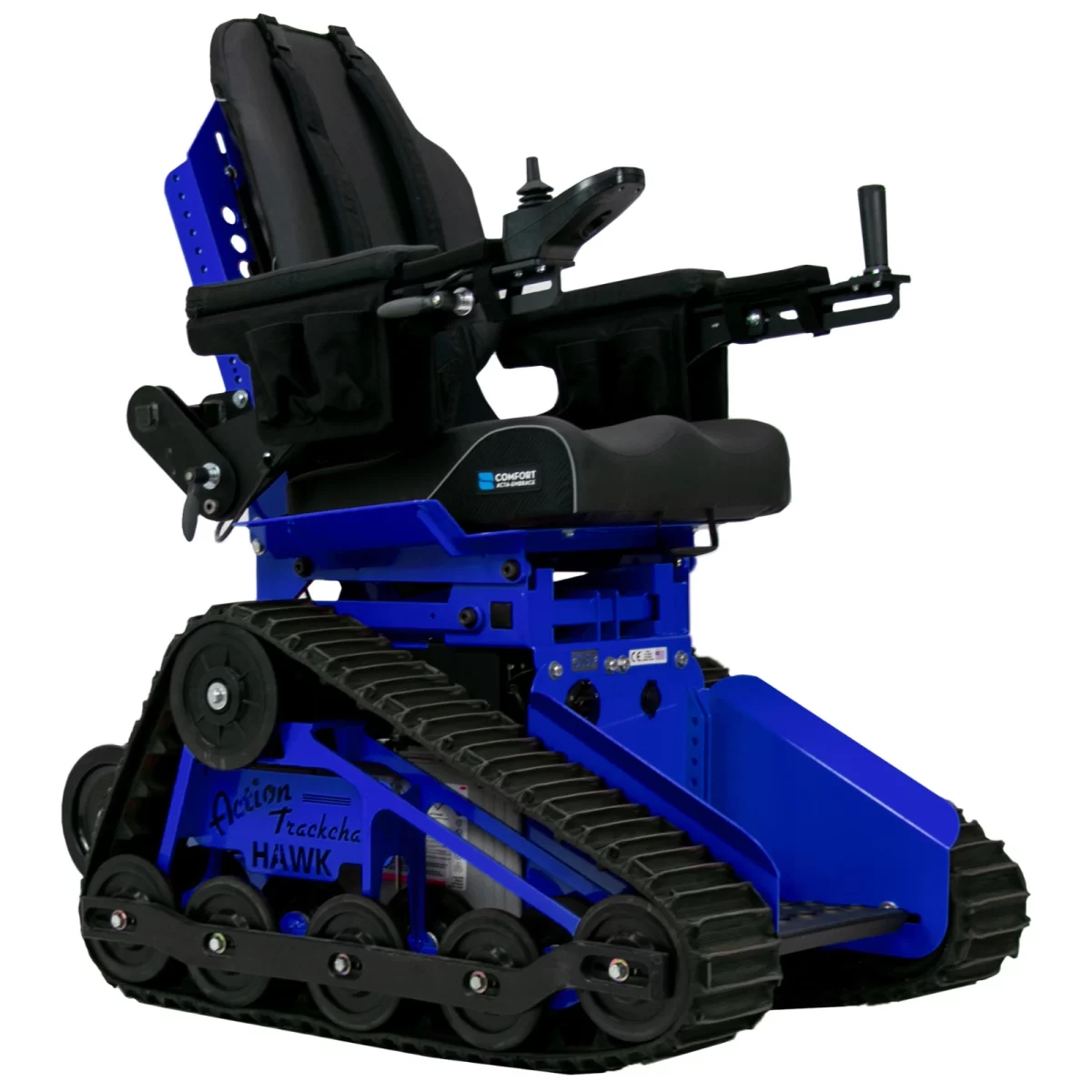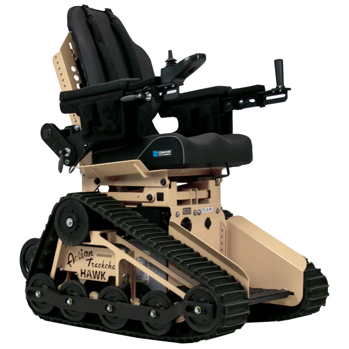 The Trackchair® Hawk is tracked wheelchair cleared for sale by the FDA, opening the door for Government Finance options. The Trackchair® Hawk is narrower for individuals that are looking to pass through doorways and for those that would like to transport an Trackchair in a handicap accessible vehicle. The Hawk provides superior seating comfort and FDA options that enhance user satisfaction.